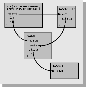Channels are a common control model for Limbo programs: an executive process (e.g., init