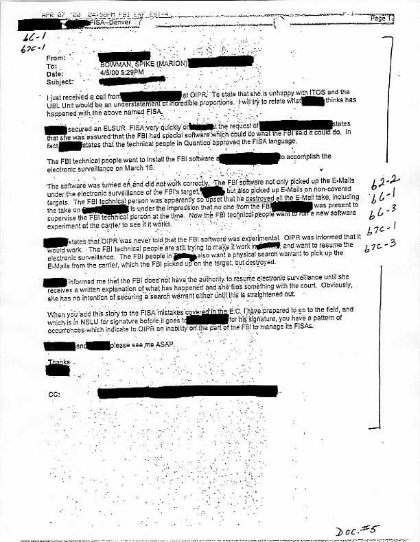 FBI Memo on "FISA Mistakes" Key to Acronyms:ELSUR - Electronic Surveillance