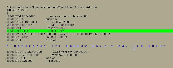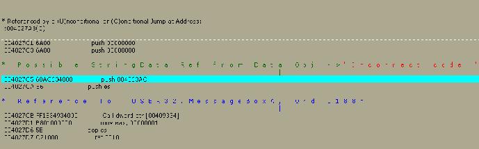 slip back into W32Dasm, and see what we can see around the area we patched, I