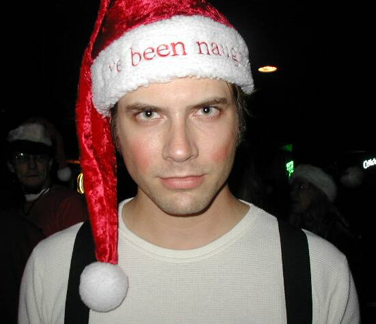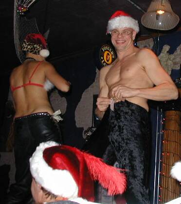 It was all very innocent -- Mr. Bad had just arrived in Austin to visit his friends in the Ministry of Truth, and an idea was hatched over dinner. Bad suggested, "Say, let's all three of us don Santa suits and have a night out. We can sing carols, hand out candy canes, wish people a merry Christmas -- it'd be nice to spread some holiday cheer in Austin." Surprised, we agreed; although Armand thought it sounded kind of, well, gay.