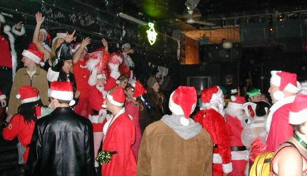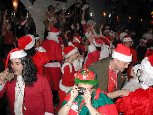 Suddenly, without warning or so much as a sleigh bell jingle, six dozen other Santas mobbed the bar!