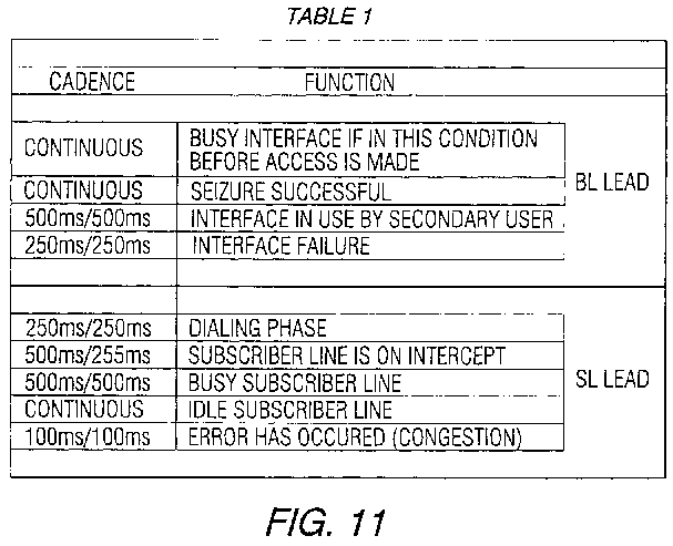 FIG. 11 contains a cadence Table 1, associated with the cadence detection mechanism