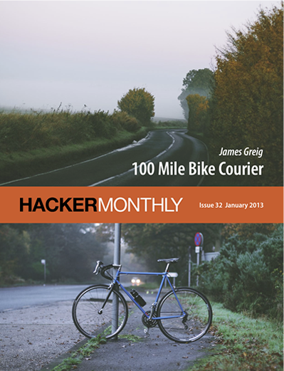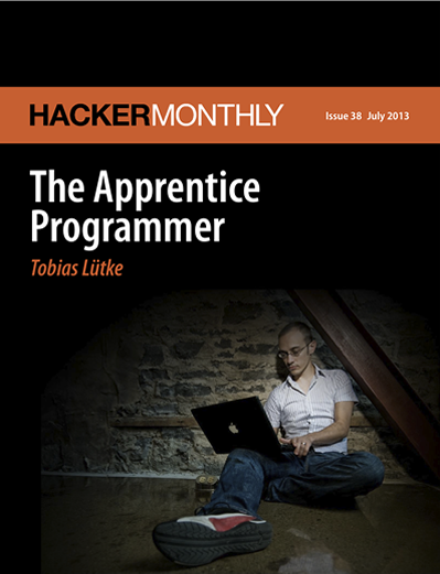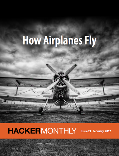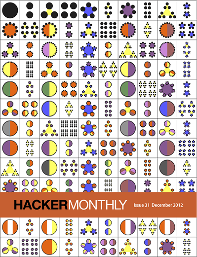 Hacker Monthly is the print magazine version of Hacker News - news.ycombinator.com - a social news website wildly popular among programmers and startup founders. The submission guidelines state that content can be "anything that gratifies one's intellectual curiosity."