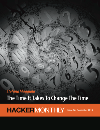The November issue features "The Time It Takes To Change The Time" from Stefano Maggiolo on the cover. And, we have articles about Kalman Filter, Monte Carlo Tree Search, Hardware Startup, and a story about how the founder of Debian came to find Linux.