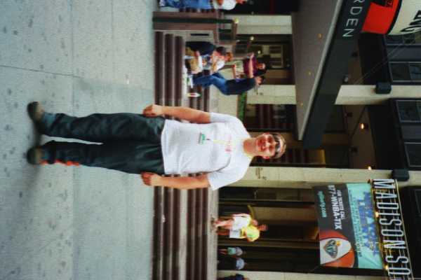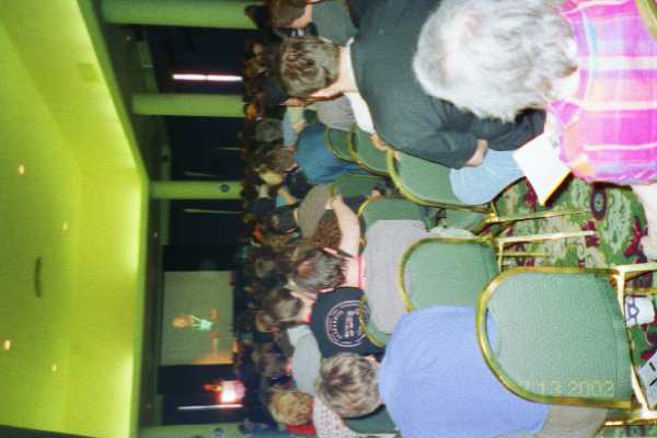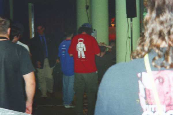 Emmanuel Goldstein, founder of 2600 magazine, from behind.. (red shirt)