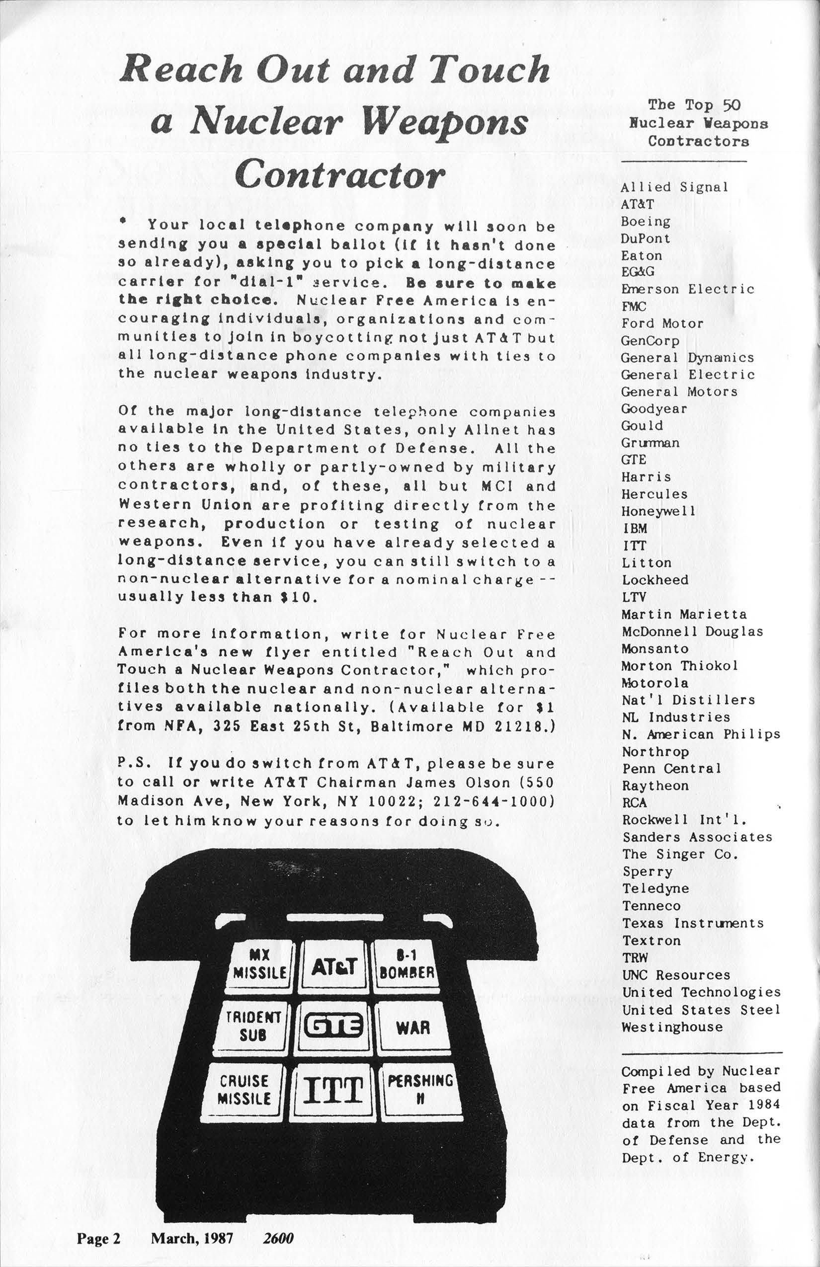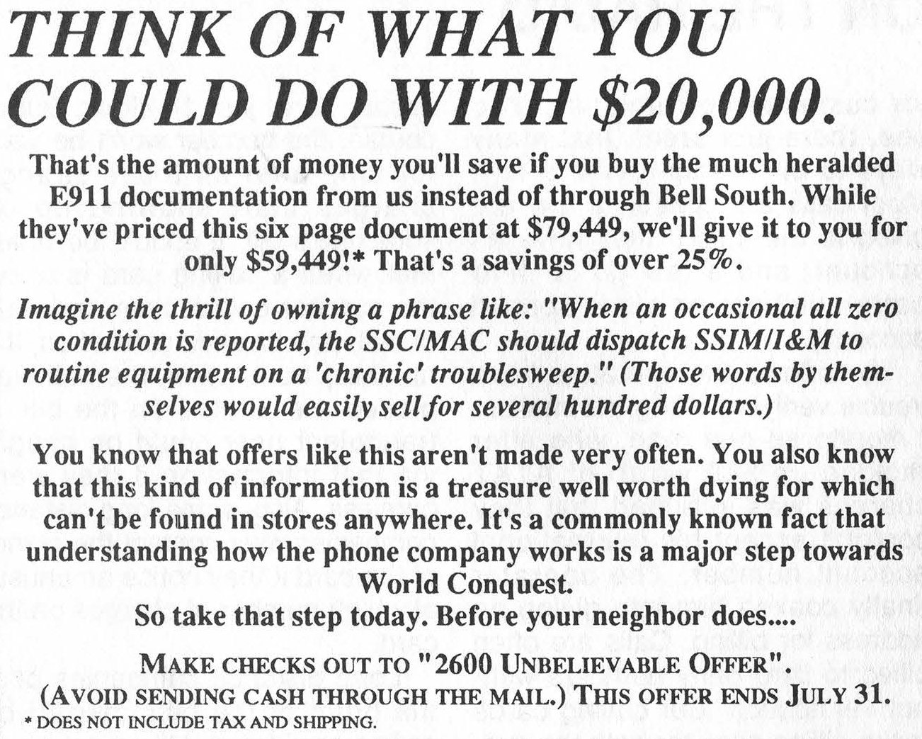 --- Excerpt from a letter in $2600 Magazine Vol. 18, No. 2. Hmm... According to this, $2600 Enterprises, Inc. is one of the biggest threats to a free society!