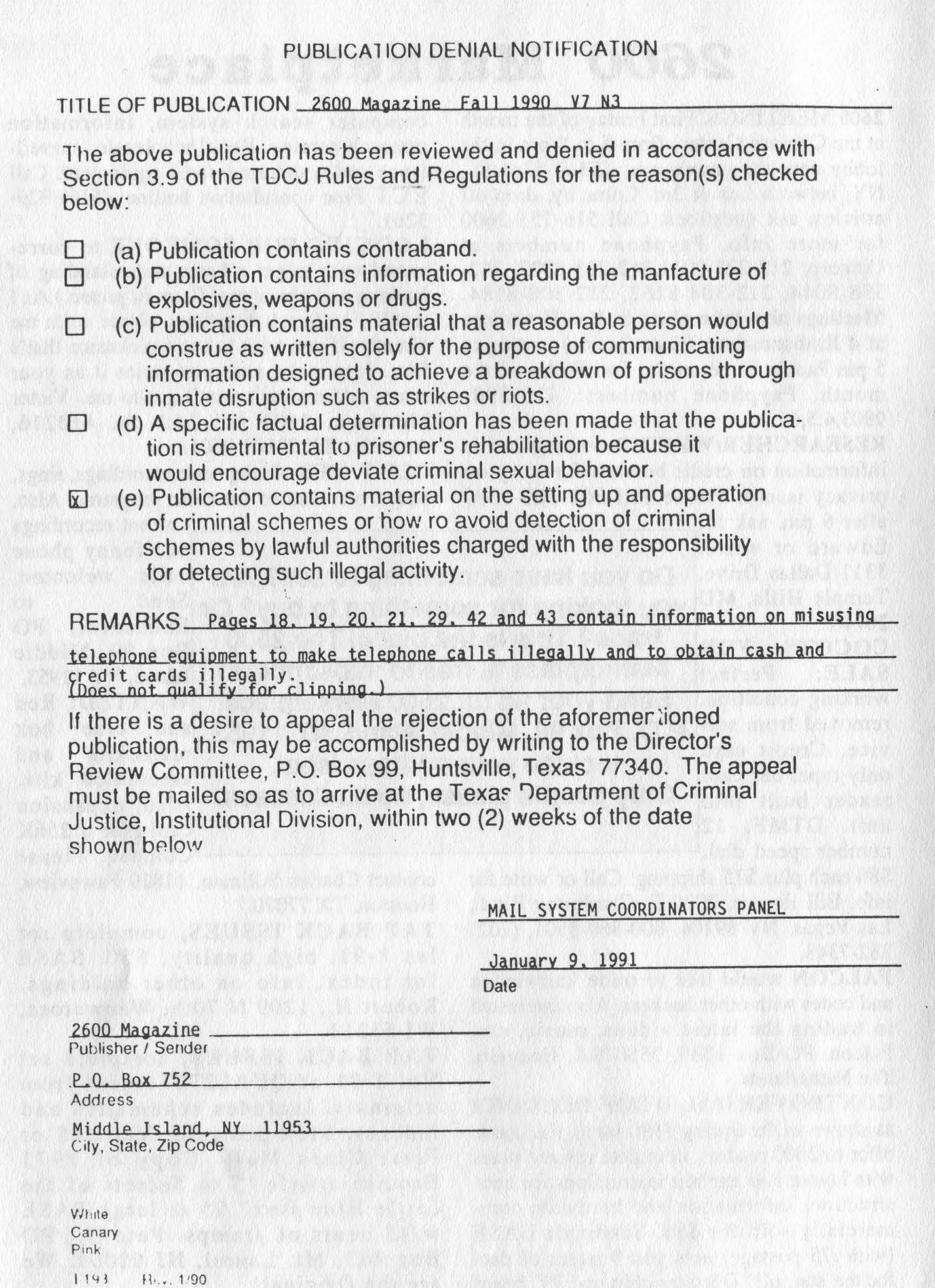 --- Funny letter from "The Phrkman" and "Cybrthuug" in $2600 Magazine Vol. 14, No. 4. The main purpose of $2600 meetings is so their "staff" has a legitimate excuse to hang around young boys.