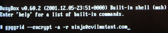Figure 1.6 : using gpggrid to start encrypting file for ninja@evilmutant.com