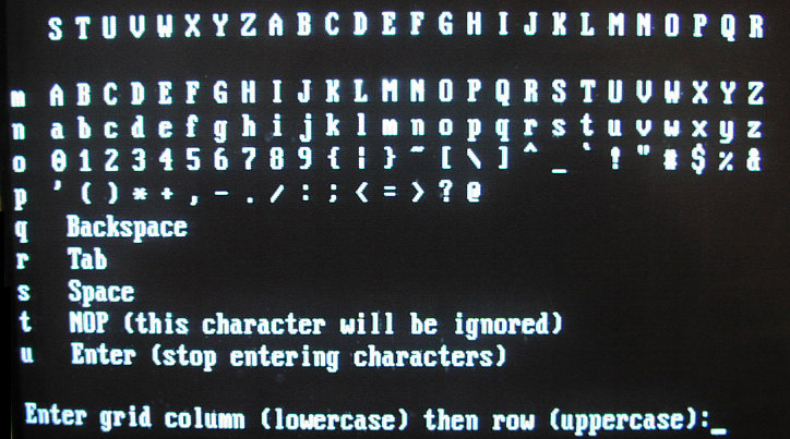 Figure 1.5 : using gpggrid to securely enter your password (note columns and rows)