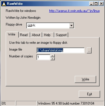 Figure 1.1 : Using rawrite under Windows for creating a boot disk
