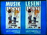 Christian is already taking my bags into his room and offering me a cup of tea. He has the archetypal hacker bedroom, complete with computers, warez, toys, stereo and tons of videos. A unique thing about his bedroom however is his view. Projected on the brick building opposite his bedroom window are slides of semi-naked women in various poses...I dont think they've bothered to change the slides for a couple of decades though, every once in a while you spot a super-fly 70's afro flicker by....right next to the projected slides stands a billboard of Beevis and Butthead, heh, now thats what I call strategic marketing!