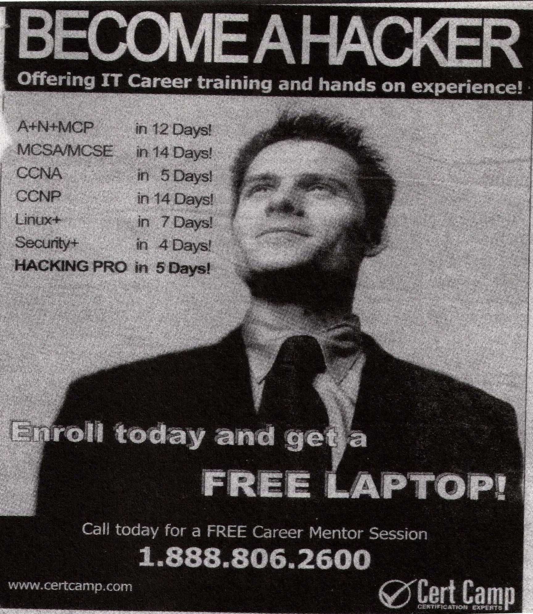 Yes, this is what it's all about. All you have to do is pay these guys thousands of dollars and you too can look proudly into the distance and ponder on what you will do with your newly purchased hacker prowess. Nice phone number too, fellas.