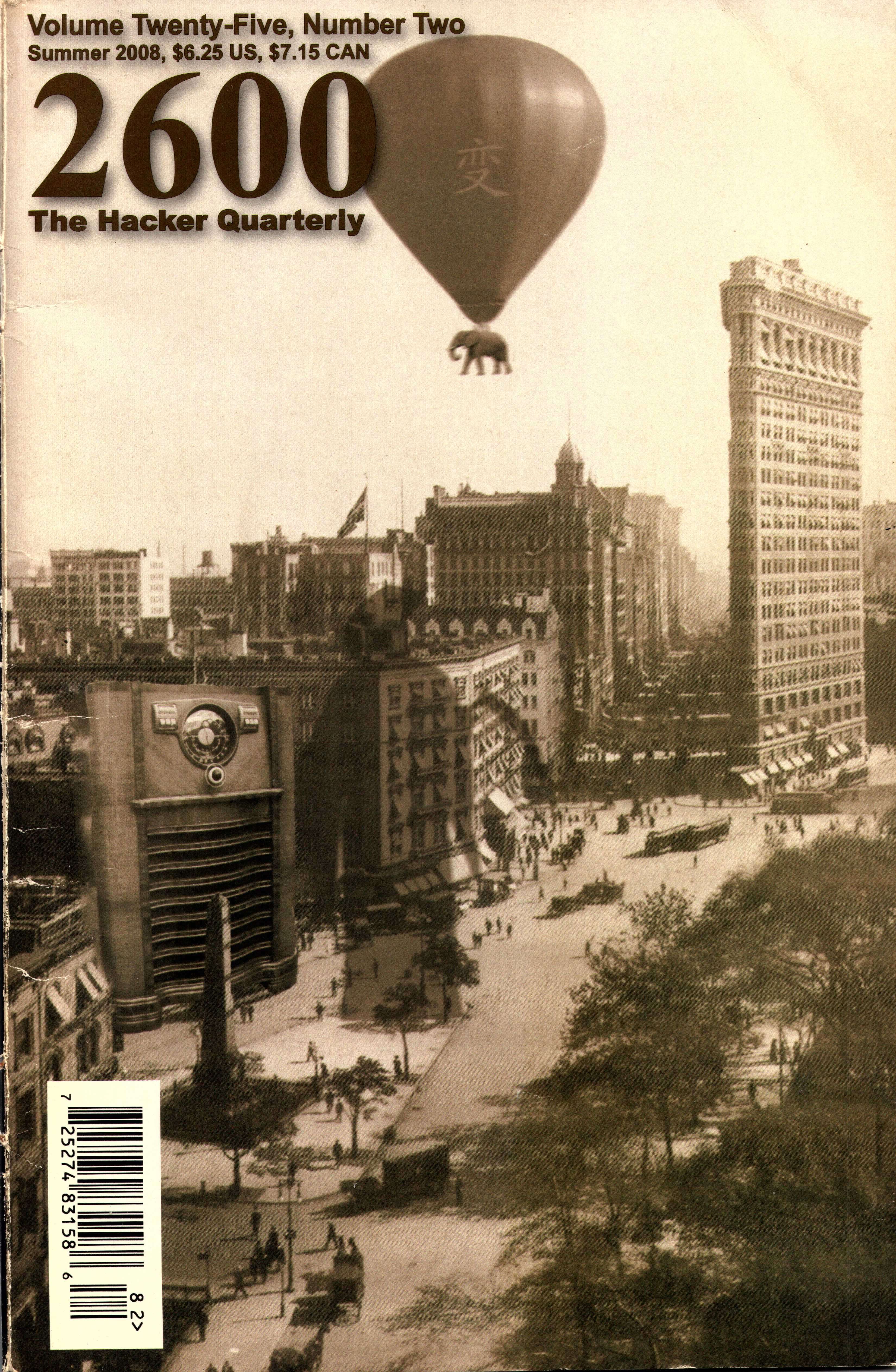 There is an elephant being carried by a hot air balloon, because the helicopter had not yet been invented. Also, that elephant symbolized the upcoming arrival of the Republican National Convention in New York City later in 2008.
