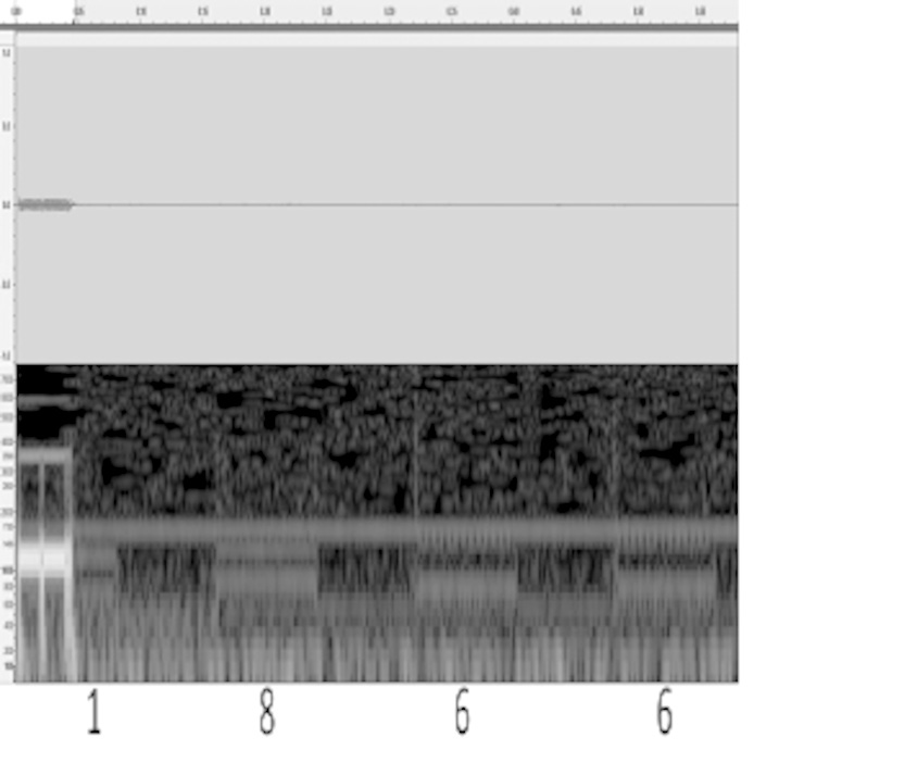 Highlight each section of the waveform to play the individual tones, then play each DTMF tone from another source such as a tone dialer or DTMF generating program to compare until you hear the matching tone.