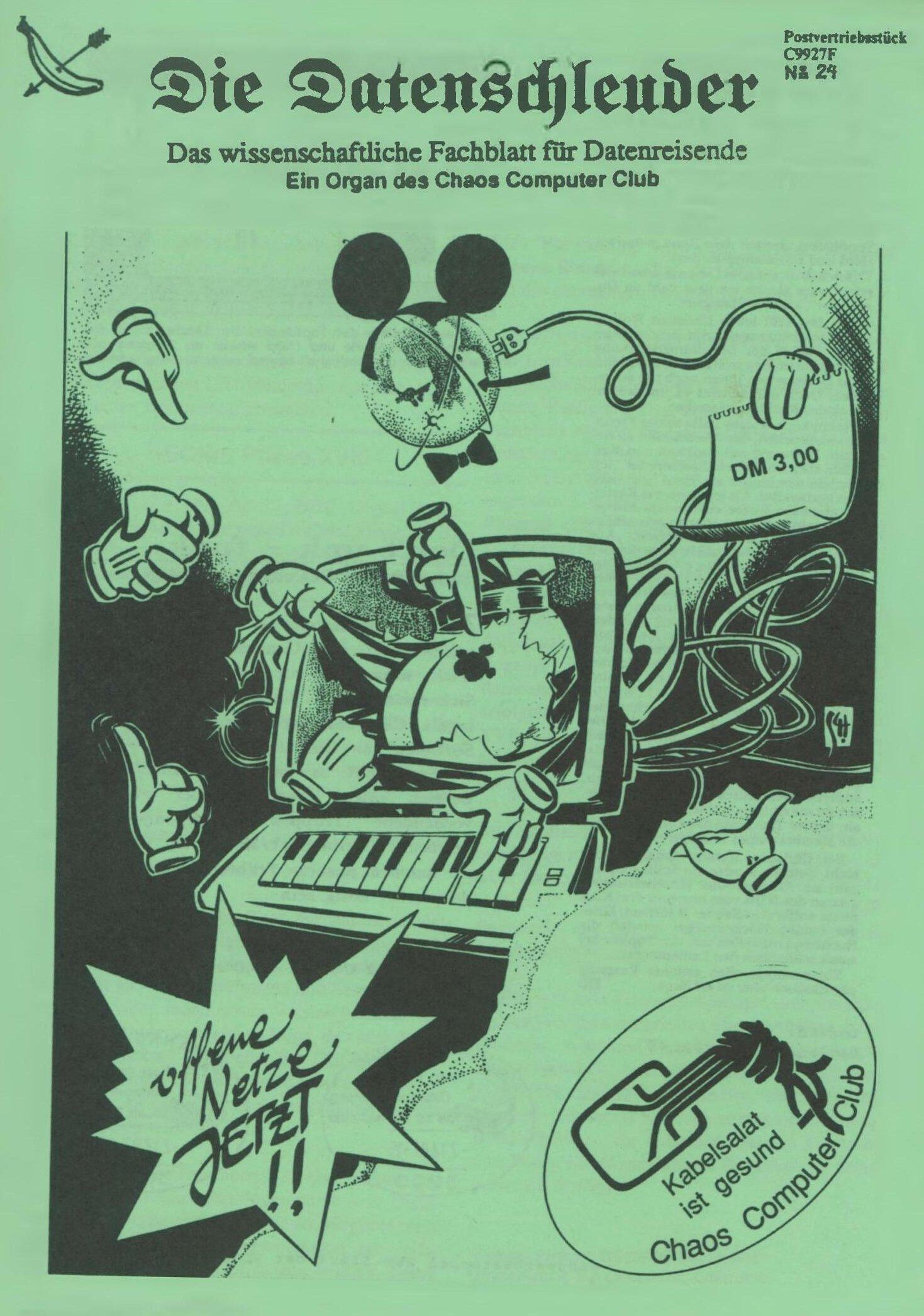 After this, I think there was an article about hackers - people who work with computers and that mentioned the Datenschleuder. It was in Der Spigel, like Newsweek here, or Time, and so suddenly many people phoned an wanted to get the Datenschleuder. Then from there the second issue of Datenschleuder was printed a lot, then the Chaos Computer Club.