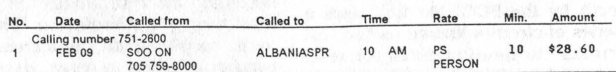 For many years, the strange and mysterious European country of Albania was completely unreachable by telephone, at least from the United States. But all of that suddenly changed on May 1, when AT&T started providing operator assisted calls there. It's rumored that direct dial service will start in the fall. If so, the country code is 355. The call shown below was made from Canada. Now there are only three countries that are unreachable from the United States: Vietnam, Cambodia, and North Korea. (Actually, it is possible to call those places from here - can you figure out how?)