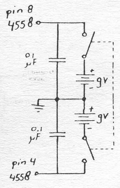 One last word about the dual op-amp - pins 4 and 8 of that chip are used to supply positive and negative voltage (see Schematic #2).