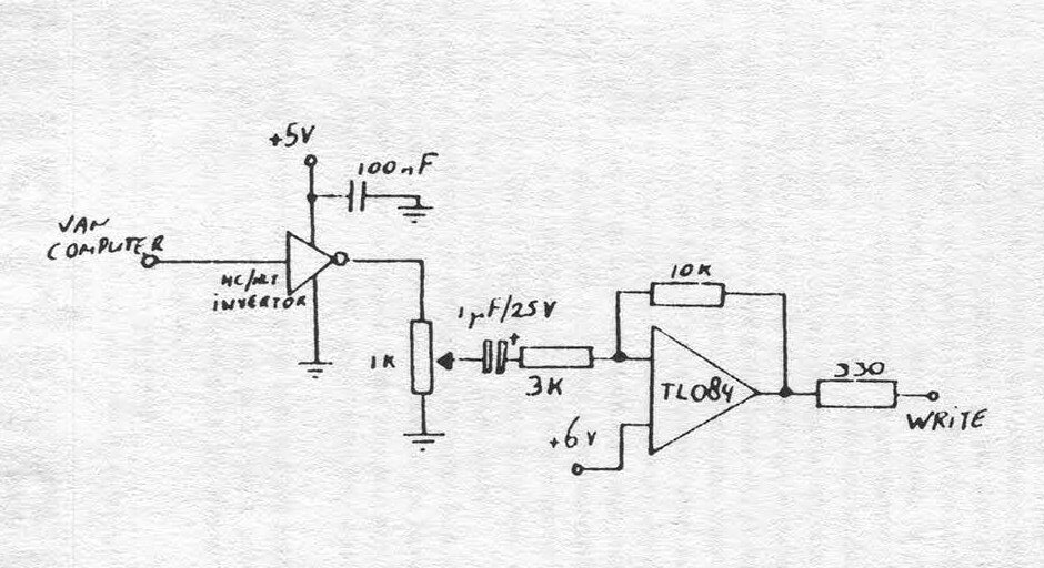 At the left of Schematic #1 you will see the read head. For this (as well as the write head) you cannot use any cassette player head which happens to be lying around. You will need to use a data head or a card reader head (you can obtain them from Michigan Magnetics among others).