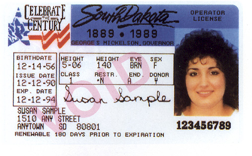 South Dakota ID (Circa 1991, Adult DL Shown)
