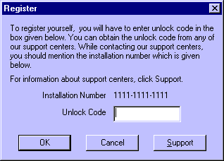 dialog box asking for an unlock code will be displayed (I've changed the Installation