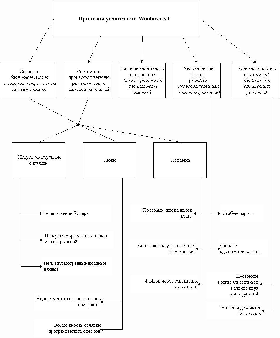 Оказывается, что классификация причин уязвимости Windows NT весьма похожа на рассмотренную аналогичную классификацию для UNIX.