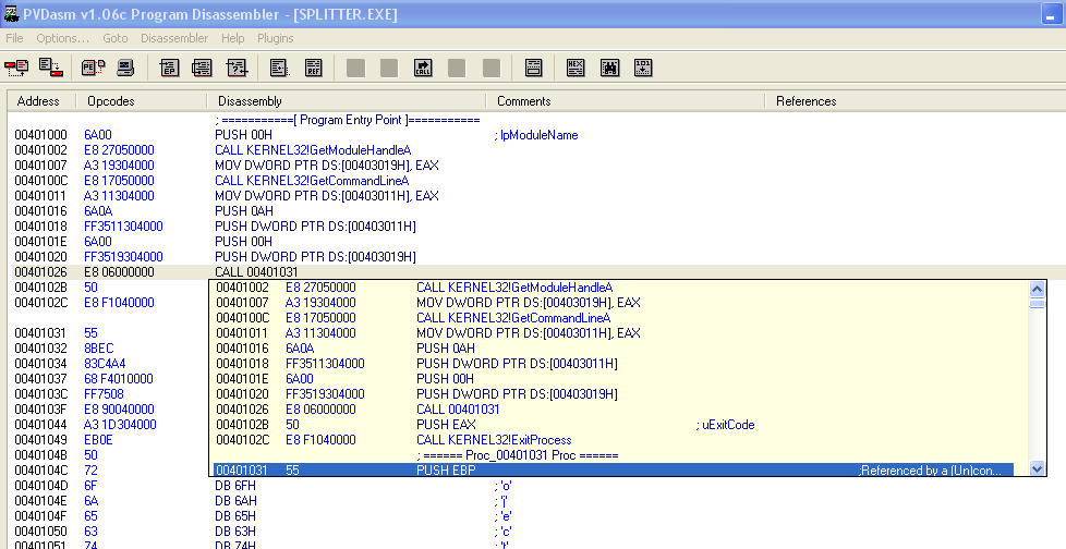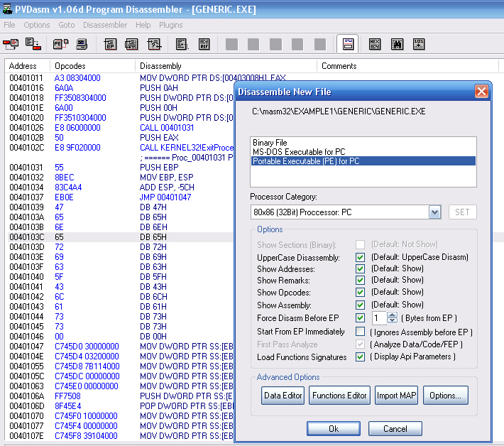 Download PVDasm 1.6d Free Disassembler.