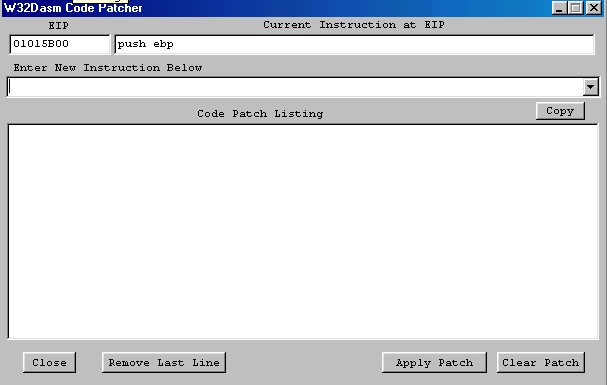 Modif d'instruction dans la fenêtre "PATCH CODE"'