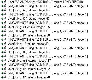 now , you see the crackme taking ascii value of the current char (1st it is "A" from ACiD BuRN)