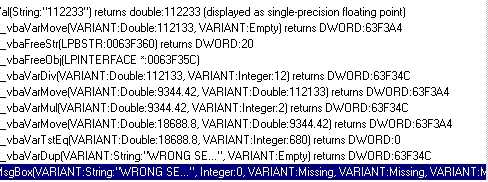 4th : you see : __vbavarmul(VARIANT:9344.42,VARIANT:2) : this multiple the result from the div