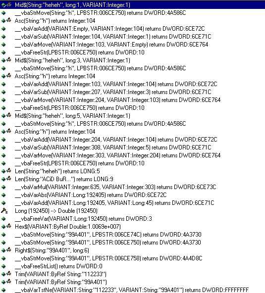 __vbavarMul(VARIANT:635,VARIANT:Integer:303) <== multiply the value from the name with