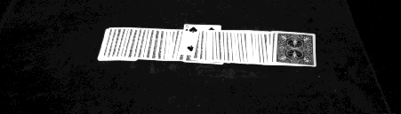 En une fraction de seconde, la carte choisie par le spectateur et remise face en bas au centre du jeu se retourne face en l'air.