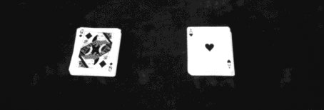 '' ... et un cœur... si on regroupe ces deux cartes, on forme la dame de cœur. Regardez à présent à quelle carte j'ai rêvé la nuit dernière.''