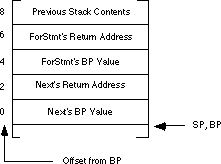 routine. Upon initial entry into Next (and setting up bp), the stack contains