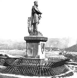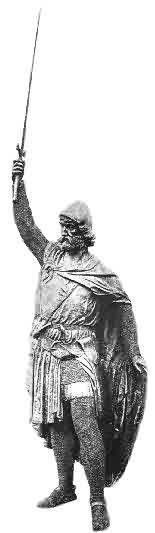 William Wallace, the national hero of Scotland. This colossal bronze statue stands in the two hundred feet high Wallace Monument at Stirling, Scotland - where the great Scotsman's sword is also kept. Waging a guerrilla war against the English who had occupied Scotland, Wallace was captured and executed in 1305.
