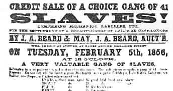 The slaving mentality. A poster announcing an auction of 41 Black slaves in 1856.