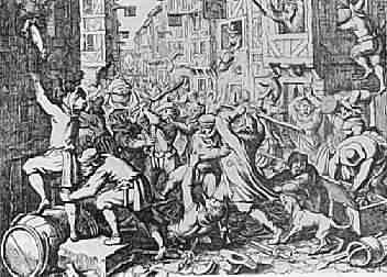 The Frankfurt Jewish ghetto is attacked in 1614.