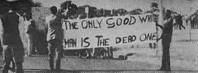 A banner carried by a Black demonstration in Lusaka, Zambia, 1970.