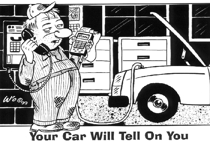 And that brings us to the proposed OBD-III stan-dards. When they would go into effect for new cars isn't clear, but it would probably be around 2005. As Jennifer and Brock Fraser described in the October 1998 issue of Hot Rod, OBD-III as proposed would require your new vehicle to “have communications capabilities enabling information to be passed from the vehicle to remote stations” in real time at random, perhaps without your knowledge. If the system sensors detect a problem, not only would the “Check Engine” light come on, the associated data would also be received by “roadside receivers or satellites that are randomly monitoring your vehicle” if you don't fix it. Next thing you know, the cops or the feds are pulling you over, paying you a visit, or mailing you a summons. But such monitoring, especially by satellite, would also tell where you are and how fast you're going. Those satellites could monitor your movement twenty four hours a day - and detect if you were wearing your seat belt.