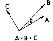 As shown in Figure 3.4, the direction of C is the direction a right-handed screw would travel if turned in the direction of A turned into B. The cross product of two parallel vectors is always zero because the sine of zero is zero.