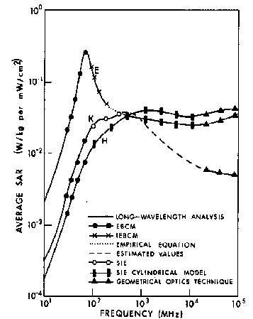 Illustration of different techniques, with their frequency limits, used for calculating SAR data for