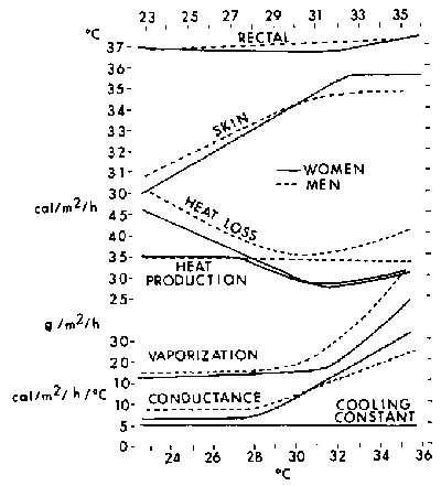 10.3. Thermoregulatory profile of nude humans equilibrated in a calorimeter to different ambient temperatures