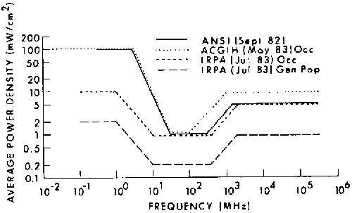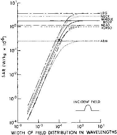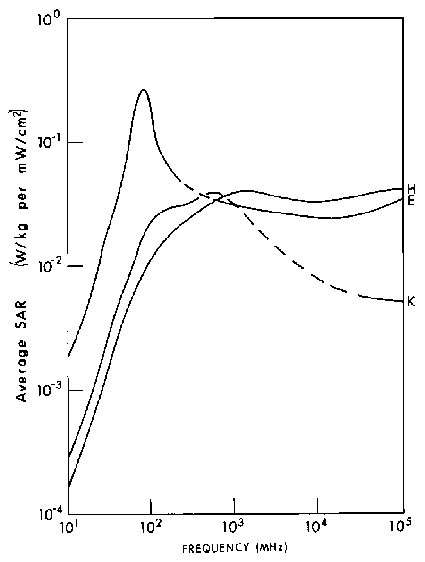 11.4. Power densities that limit human whole-body SAR to 0.4 W/kg for a 1.8-m, 70-kg person