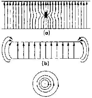 3.21. Cross-sectional views of the electric- and magnetic-field lines in the TEM mode for coaxial cable and twin lead
