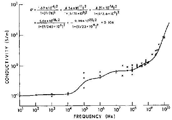 3.35. Average permittivity of the human body (equivalent to two-thirds that of muscle tissue) as a function of frequency