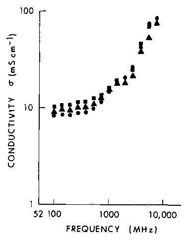4.19. Measured values of relative dielectric constant and conductivity of rat blood at 23° C