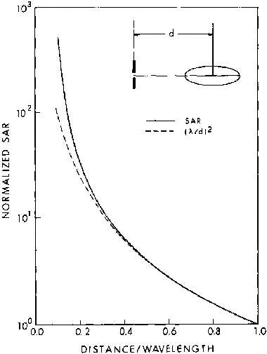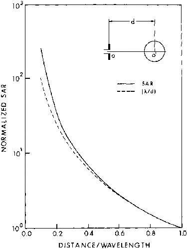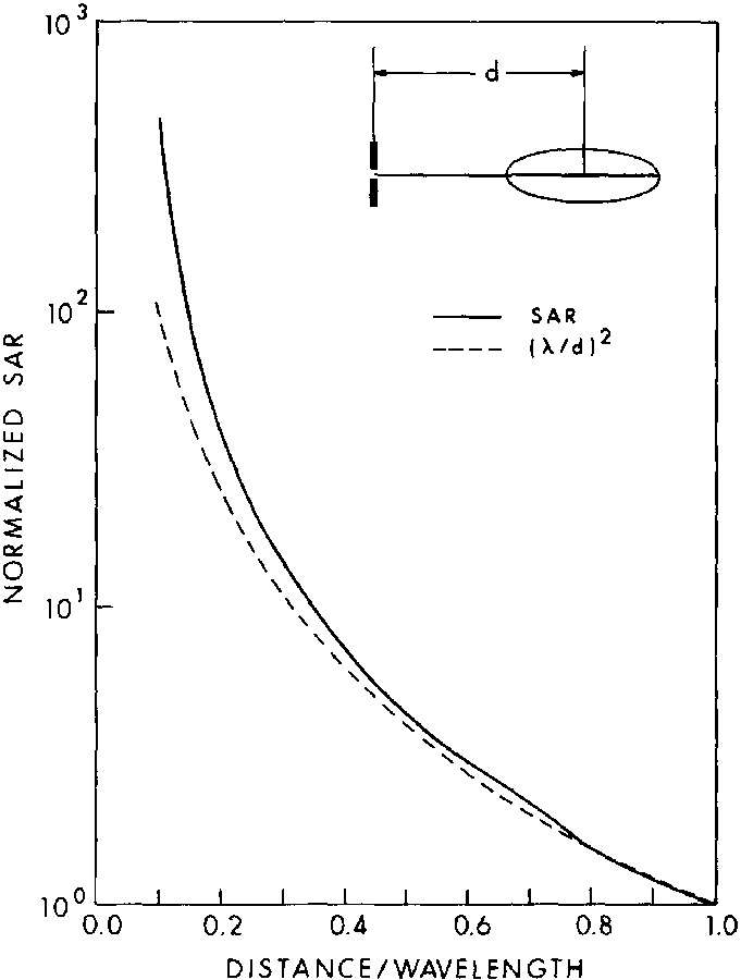 8.20. Measured relative SARs in scaled saline spheroidal models versus distance