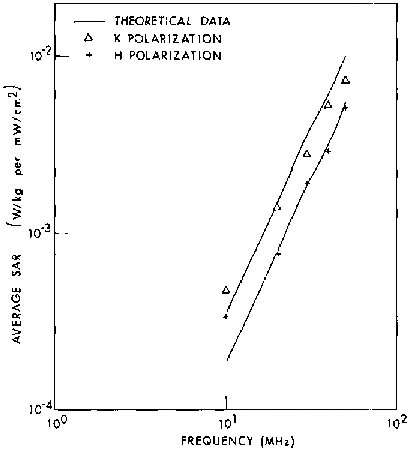 8.2B. Comparison of measured and calculated SAR values for an average man in free space, H and K polarizations