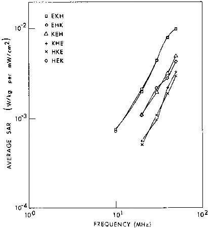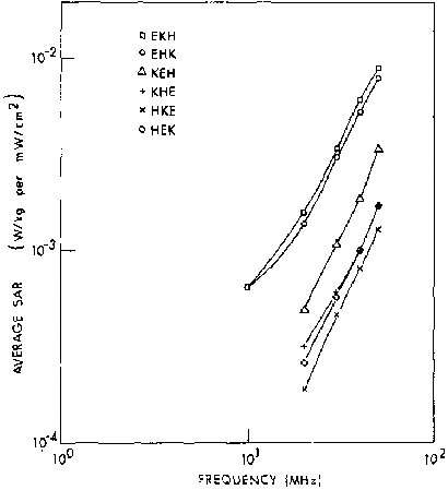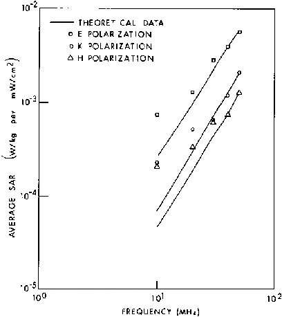 6.3. Calculated planewave average SAR in a prolate spheroidal model of an average man for three polarizations