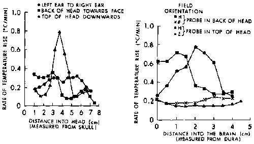 8.28. Rate of temperature rise from RFR exposure to the back of an M. mulatta cadaver head (with body attached); 1.2 GHz, W, 70 mW/cm 2, in the far field