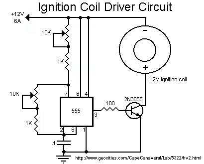 sparks using a common ignition coil. The input is 12VDC at around 5 to